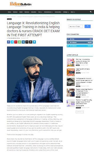 Aman founded LanguageX to help students gear up towards excelling in the OET exam which is now the leading provider of the best OET coaching in India today.